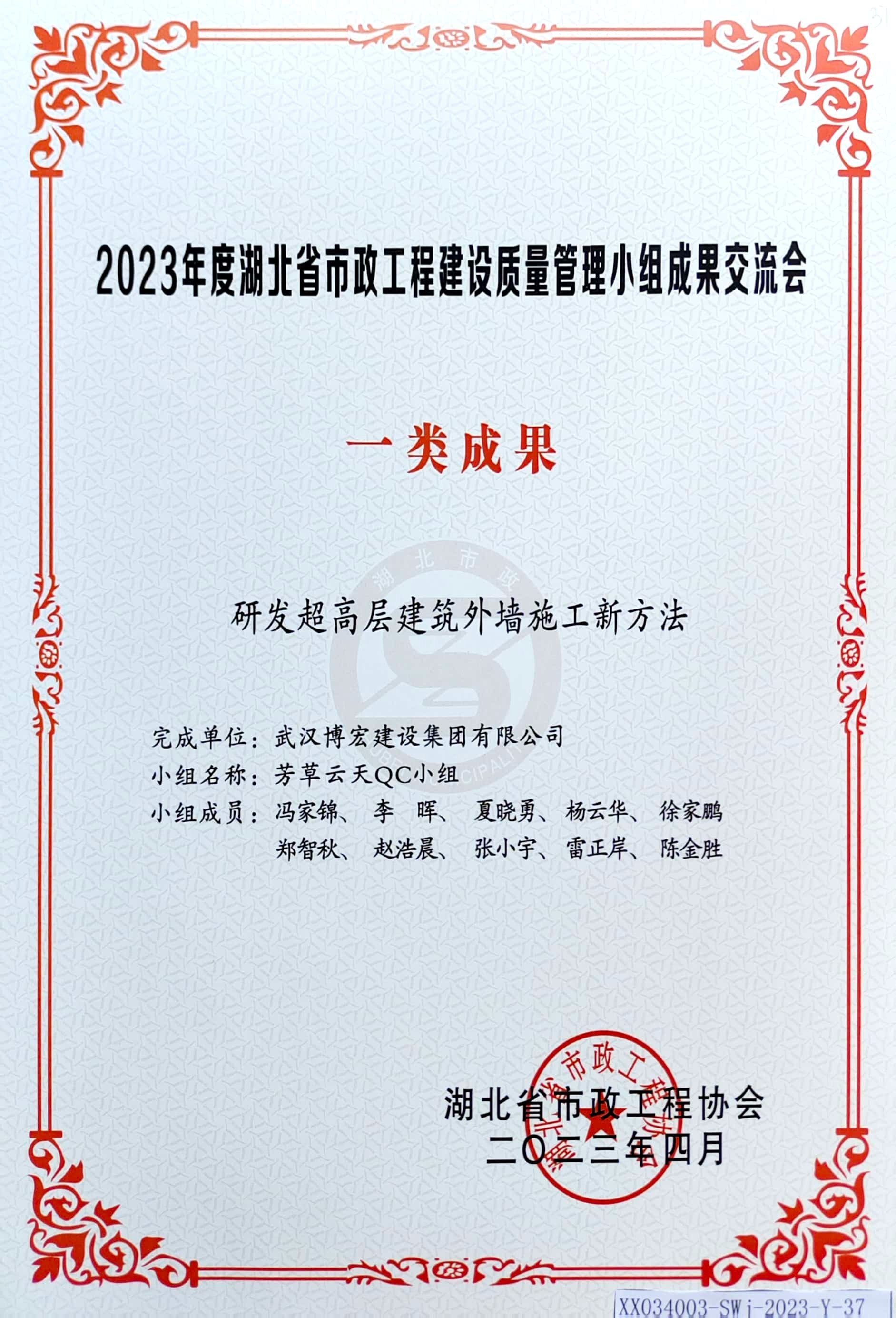 2023年度湖北省市政工程建設(shè)質(zhì)量管理小組成果交流會(huì)-一類(lèi)成果