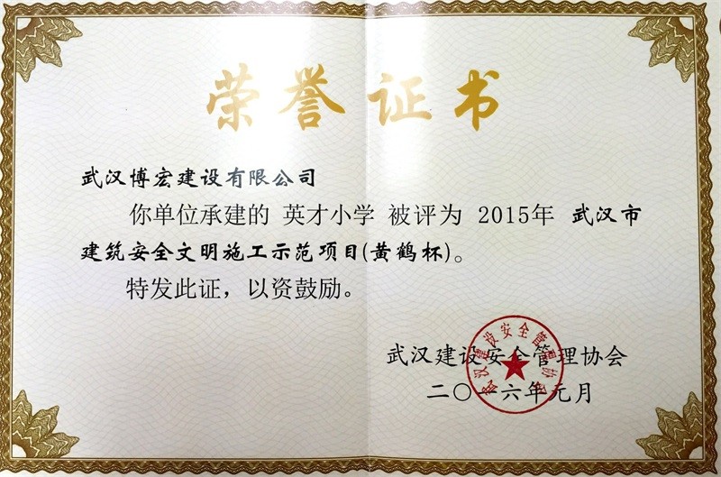 英才小學-綜合教學樓及食堂結(jié)構(gòu)優(yōu)質(zhì)工程證書