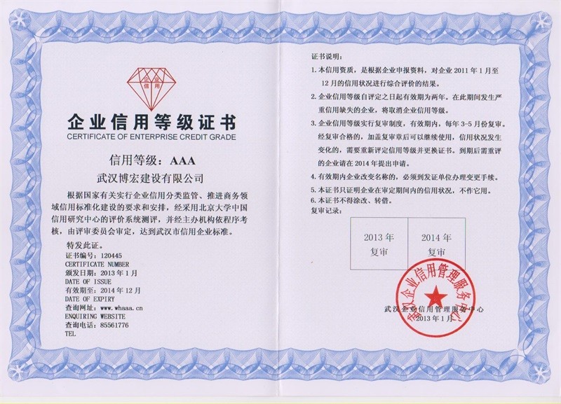 企業(yè)信用等級(jí)證書AAA