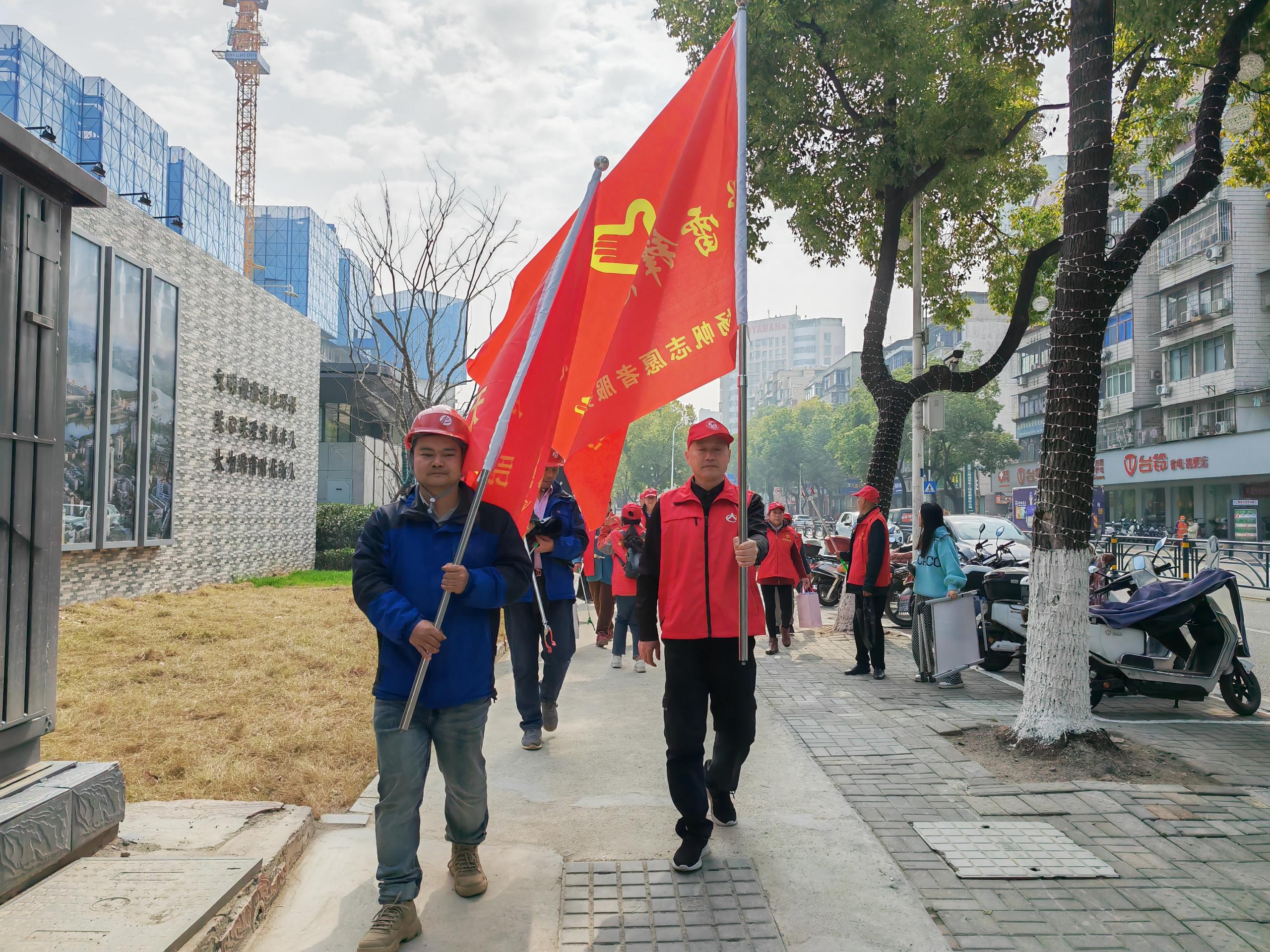 項目部工友志愿服務(wù)隊與楊帆志愿服務(wù)中心志愿者化身文明行為的倡導(dǎo)者走上街頭、走進小區(qū),通過發(fā)放宣傳單、紙巾盒的形式向轄區(qū)居民群眾廣泛宣傳文明行為,倡導(dǎo)大家爭做文明人,踐行文明事,傳揚文明風,用實際行動詮釋新時代的“雷鋒精神”。