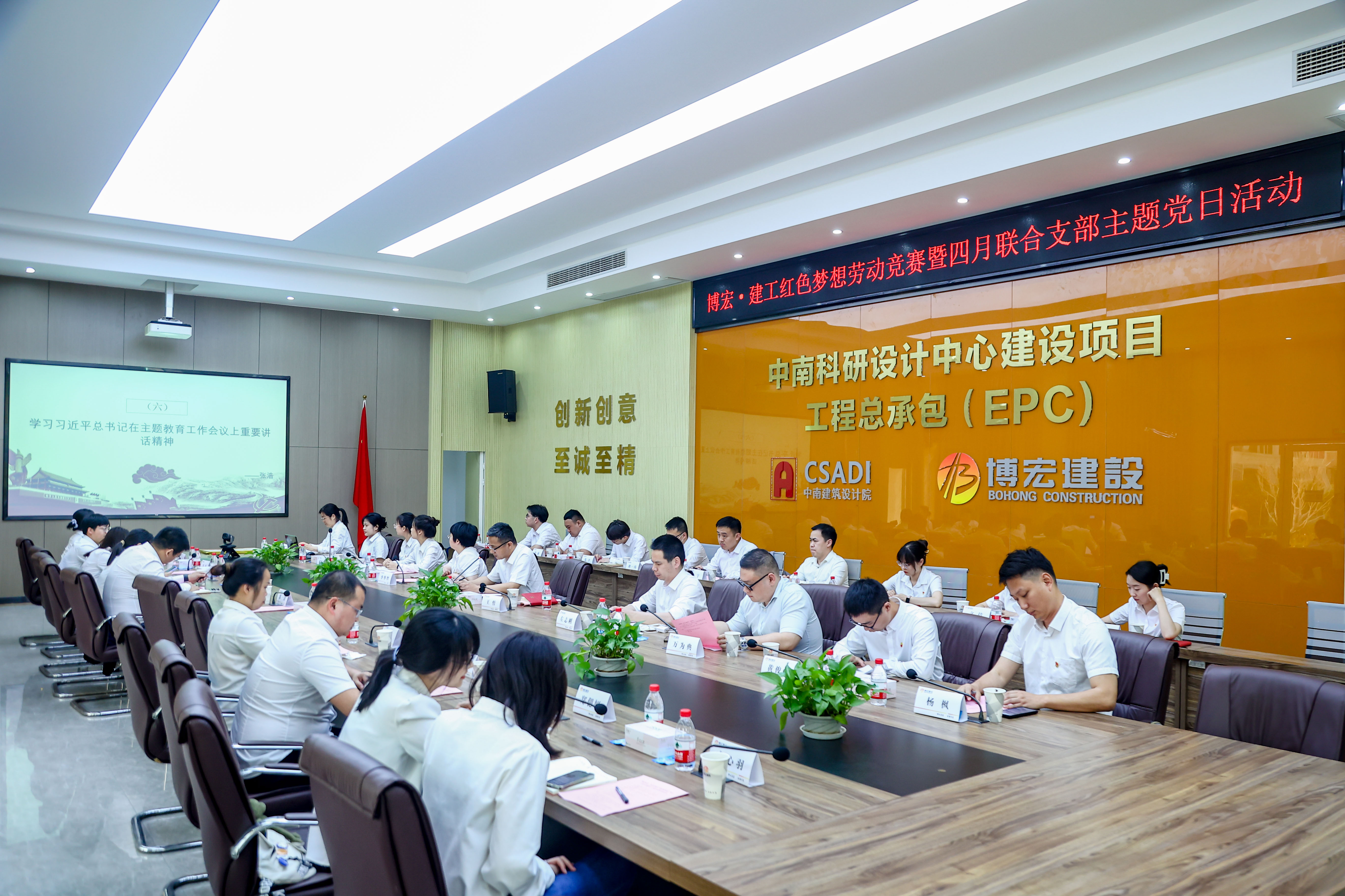 為深入學(xué)習(xí)貫徹黨的二十大和省十二次黨代會(huì)精神,大力弘揚(yáng)勞模精神、工匠精神,4月21日下午14:30,博宏建設(shè)集團(tuán)與長投建工聯(lián)合組織開展“紅色夢(mèng)想”知識(shí)競(jìng)賽暨4月支部主題黨日活動(dòng),會(huì)議在博宏建設(shè)集團(tuán)中南科研設(shè)計(jì)中心項(xiàng)目會(huì)議室舉行,會(huì)議由鄂康施工企業(yè)聯(lián)合黨支部書記、長投建工董事長張浩主持。
