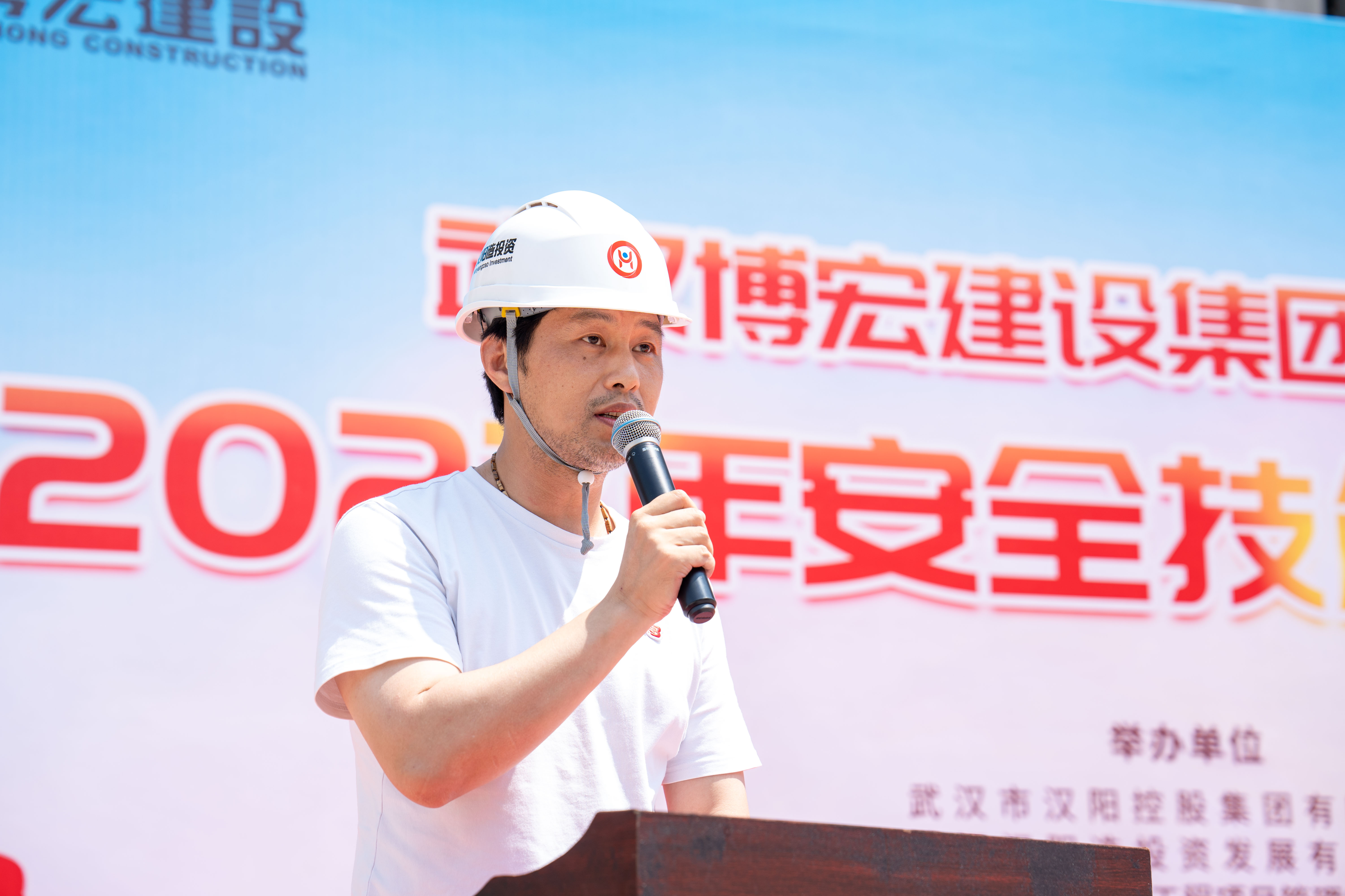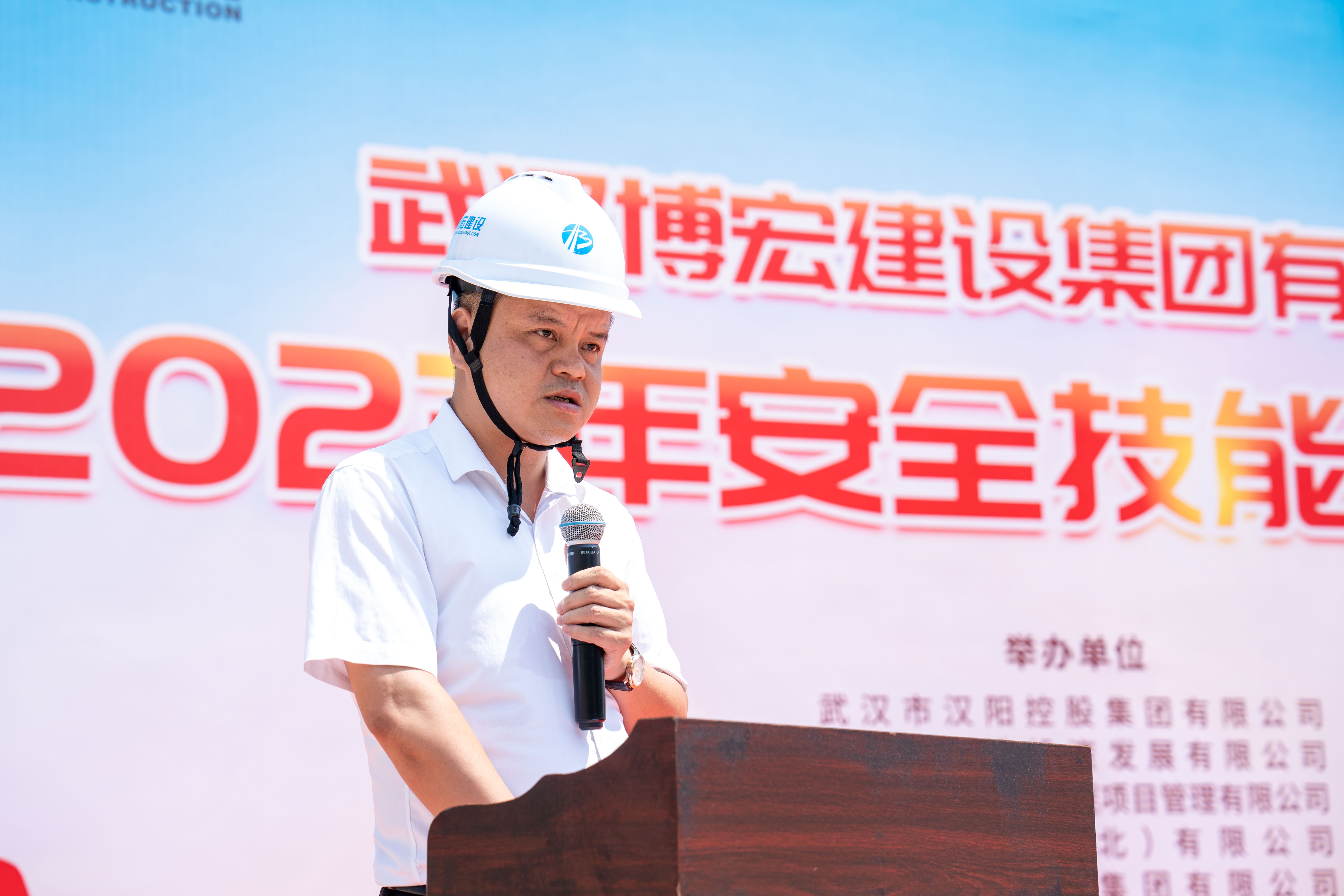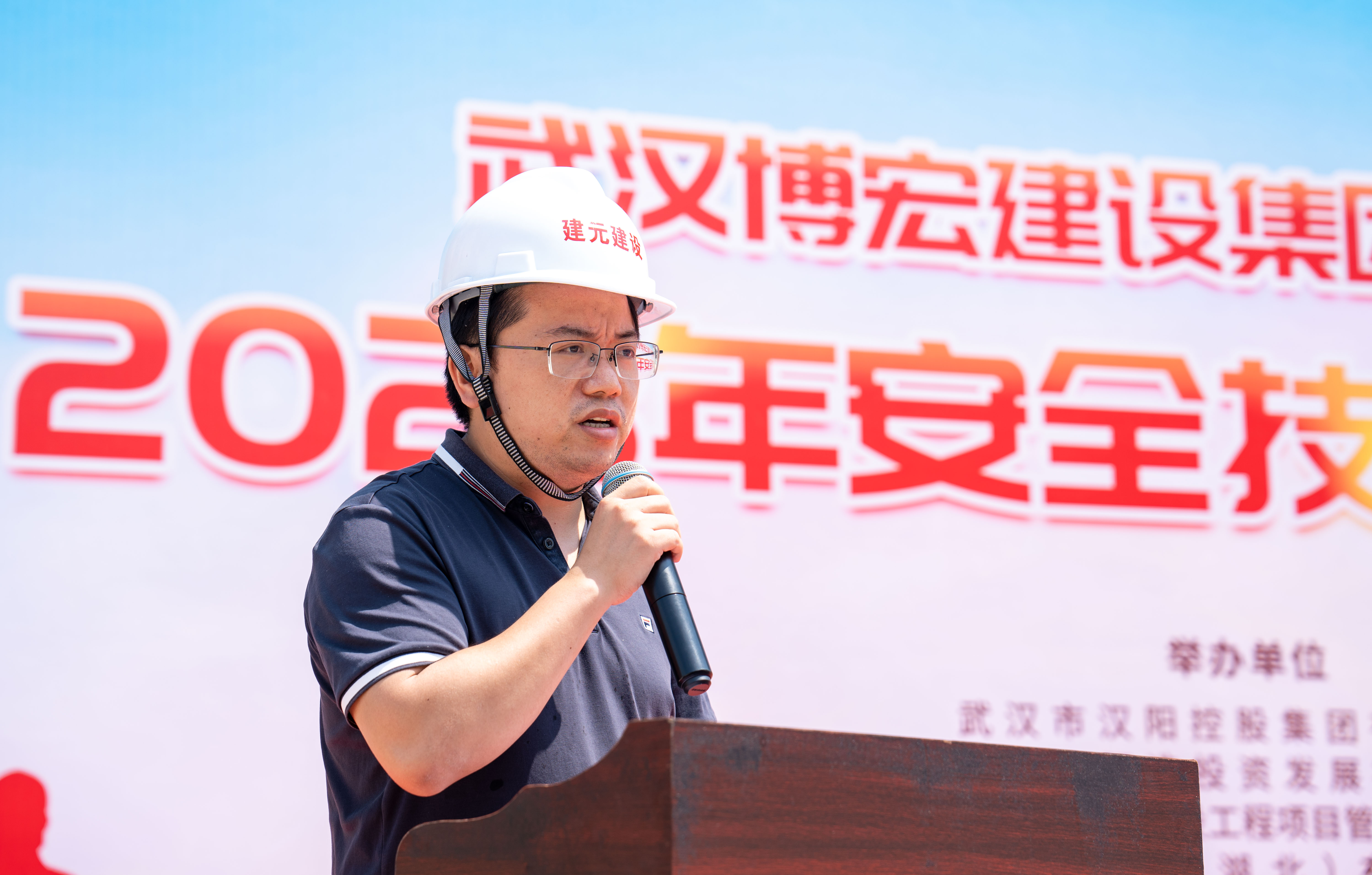 現(xiàn)場,武漢漢陽造投資發(fā)展有限公司工程部部長呂飛翔、武漢市建元建設(shè)工程項目管理有限公司房建部副部長劉志勇分別作出致辭及講話,表達了對本次大賽的希冀與祝福,號召參建各方攜手共進、合作共贏,認(rèn)清安全管理的嚴(yán)峻形勢,振奮精神、自我加壓,消除安全漏洞,抓好安全工作,守好安全底線,開創(chuàng)項目安全管控新局面。