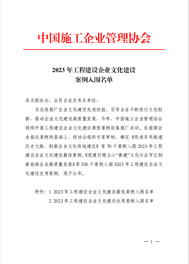 近日,中國施工管理企業(yè)協(xié)會(huì)發(fā)布2023年全國工程建設(shè)企業(yè)文化建設(shè)最佳案例、優(yōu)秀案例,由博宏建設(shè)集團(tuán)申報(bào)的《文化賦能顯動(dòng)力 創(chuàng)新融合促發(fā)展》獲評(píng)“企業(yè)文化建設(shè)優(yōu)秀案例”。