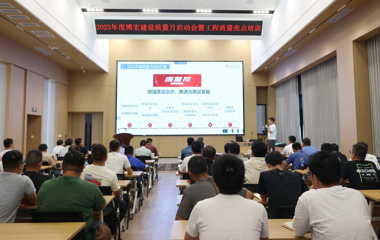今年9月是第45個全國質(zhì)量月,為全面貫徹黨的二十大精神,落實《質(zhì)量強國建設綱要》部署,促進質(zhì)量強國建設。9月15日下午,博宏建設舉辦以“增強質(zhì)量意識,推進質(zhì)量發(fā)展”為主題的2023年質(zhì)量月啟動會暨工程質(zhì)量亮點培訓,黨委書記、董事長、總經(jīng)理鄒勇,總經(jīng)理助理李暉,質(zhì)量管理部部長、市內(nèi)外各項目部負責人及質(zhì)量崗位人員共計101人線上線下同步參與活動。